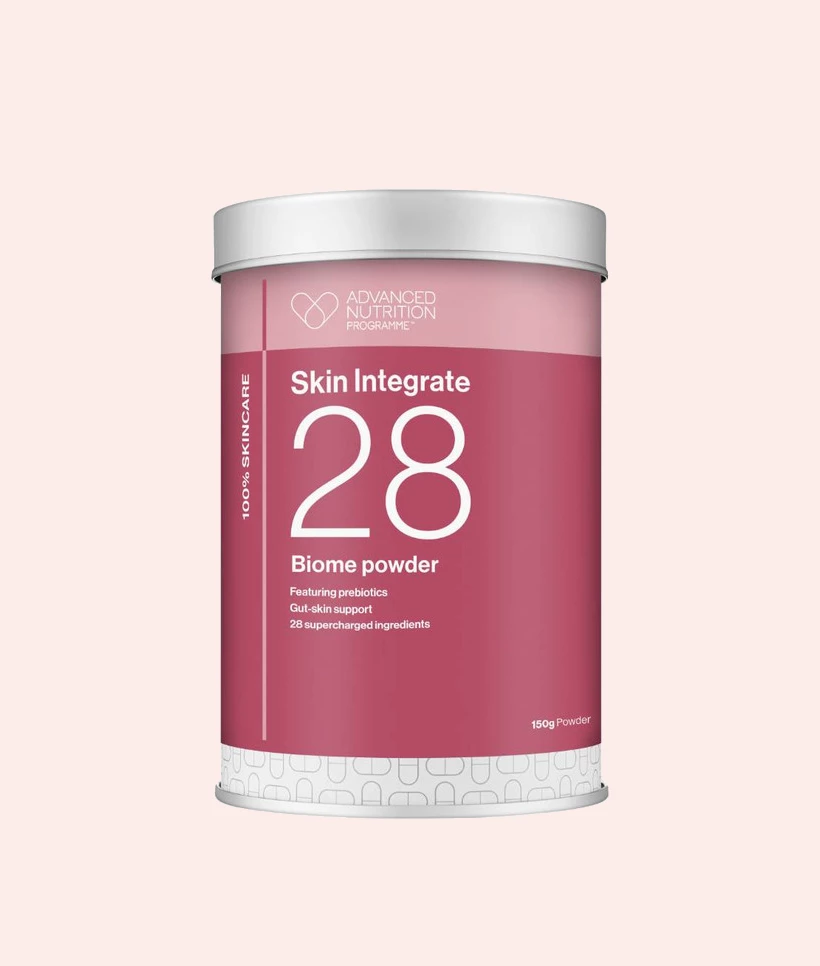 Skin Integrate 28 je napitak u prahu s 28 snažnih sastojaka – uključujući biljna vlakna, prebiotike, aminokiseline, vitamin C i cink – koji podržava crijeva, kožu i cjelokupno zdravlje, a sve to u samo jednoj žličici / 5 g dnevno.